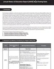 The Annual Status of Education Report (ASER) is a Citizen-led Assessments. Citizen-led means that all activities are conducted by common citizens. These citizens, usually volunteers, take the opportunity to connect with communities across the country and gather data that can help learning better.ASER is citizen-led because it is a way for all of us, especially youth, to engage in making the education system better for everyone, though technical people design its methods. The ASER Nepal survey has been piloted in one district in 2016, in one municipality in 2017-18, and in one province in 2019. The survey, like its peers worldwide, will provide invaluable data on the basic ability of children (aged 5-16 years) in Nepal with regards to their ability to read and do basic math at 3rd-grade level. ASER Nepal also conducts additional studies to add to the findings of the ASER.In particular, ASER Nepal is deeply interested in generating more data about the learning of skills and digital literacy.
